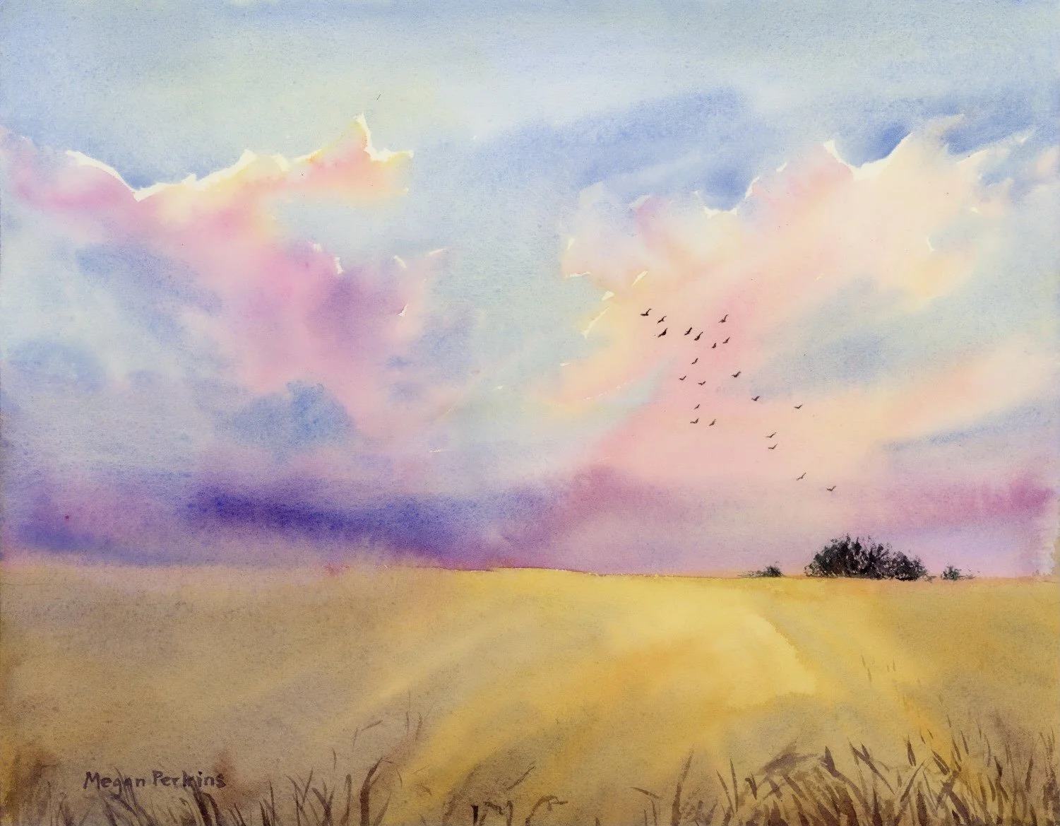Painting Big Skies 4 Weeks | Ages 18yrs. & Up | Megan Perkins Skies have a huge impact on a painting, not only sometimes taking up a large amount of the paper, but also dramatically affecting the mood and atmosphere of the work. It is important that the sky is considered carefully when planning a painting. In this class students will tackle painting sky-with clouds, with mist, full of color, or as a more neutral backdrop with a focus on being expressive and allowing the medium of watercolor to do its magic. Supply list included upon confirmation of registration. $89