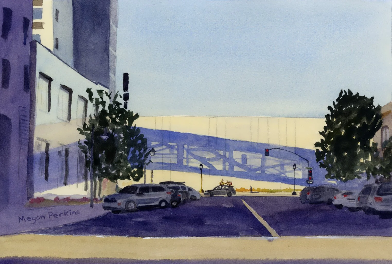 I was completely caught by the way the shadow of the sky bridge cast onto the convention center.