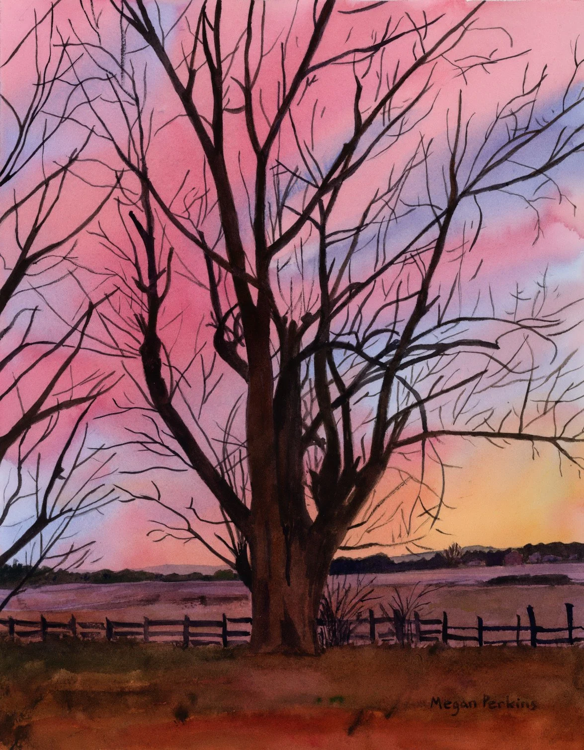 This is one of the HUGE old trees at our place. We had some incredible sunsets this winter. This evening, it felt like I was living in a pink and gold globe of light!