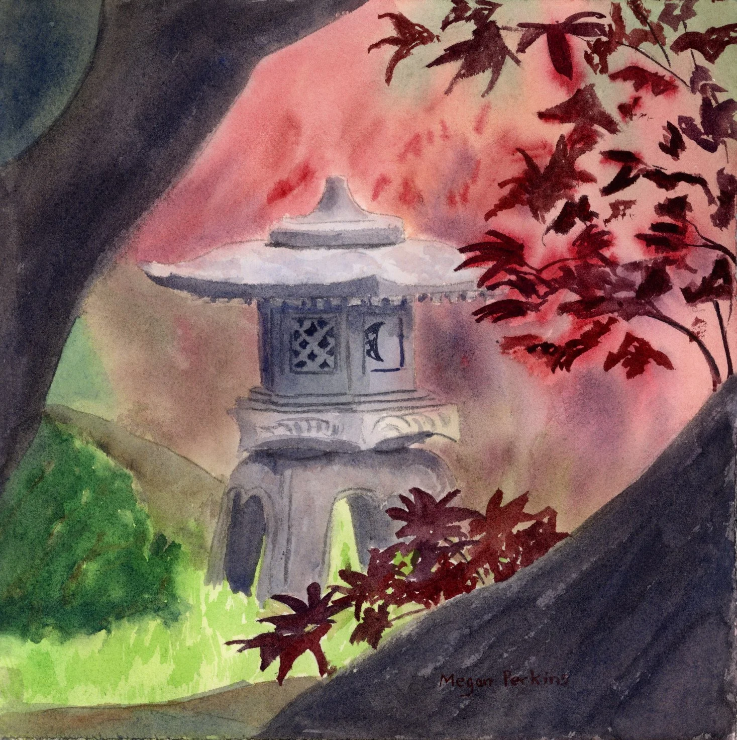 I finally managed to circle back to make some paintings inspired by the classes I taught at the Japanese Gardens last spring. The light was truly magical, as was the maple foliage!