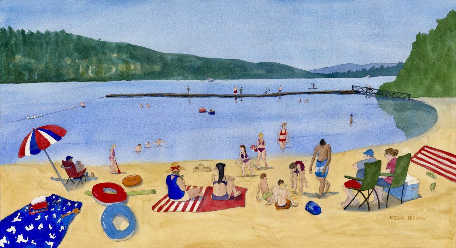 The daytime themed Liberty Lake Utility box wrap is all about enjoying summer at the lake shore. I thought about trying to fit a barbecue into this scene, but finally decided that it was better to leave it out. This is the biggest watercolor I’ve ever done, something in the neighborhood of 27” x 41” which is pretty darn big!